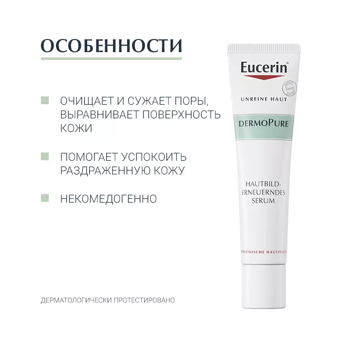 Eucerin DermoPURE Сыворотка – инновационное средство комплексного действия для жирной проблемной чувствительной кожи. Подходит для взрослых и подростков с 14 лет.