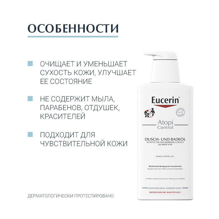Очищающее масло с прозрачной, пенящейся при контакте с водой текстурой можно использовать ежедневно во время обострений, а также в периоды ремиссии, когда кожа менее раздражена. Масло уменьшает сухость кожи и улучшает её состояние.