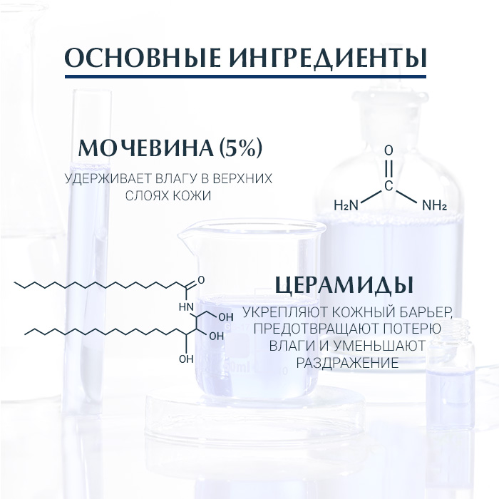 Крем с текстурой белого цвета быстро впитывается, не оставляя липкой плёнки на коже. Средство подходит для ежедневного ухода за кожей, а также для дополнительного ухода при псориазе и сахарном диабете.