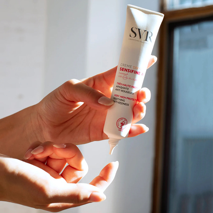 SVR Сенсифин AR Крем SPF50+ - успокаивающий крем с очень высокой степенью защиты от солнца предназначен для всех типов чувствительной, реактивной кожи с покраснениями, в том числе после процедуры пилинга. Предназначен для взрослых.