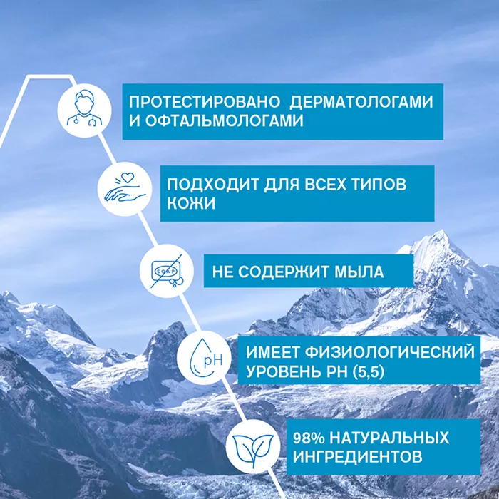 98% натуральных ингредиентов. Биоразлагаемая формула. Гипоаллергенно. Протестировано под контролем офтальмологов и дерматологов.