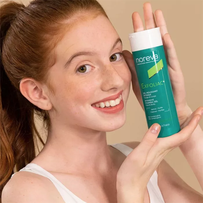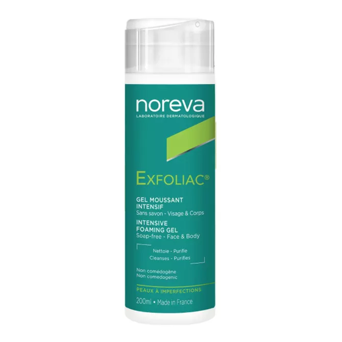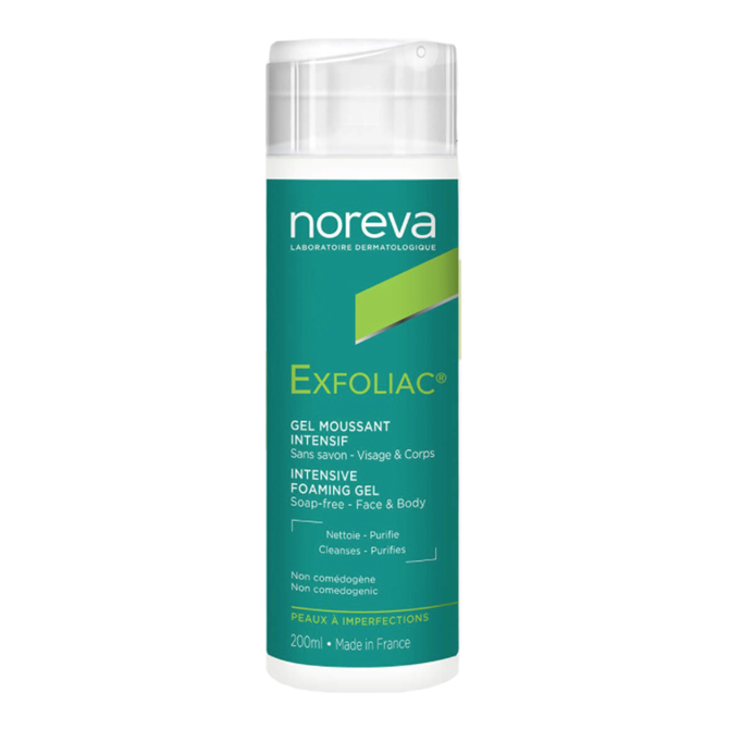 Нанесите Noreva Exfoliac Intensive foaming gel на влажную кожу, мягко помассируйте, затем смойте.
