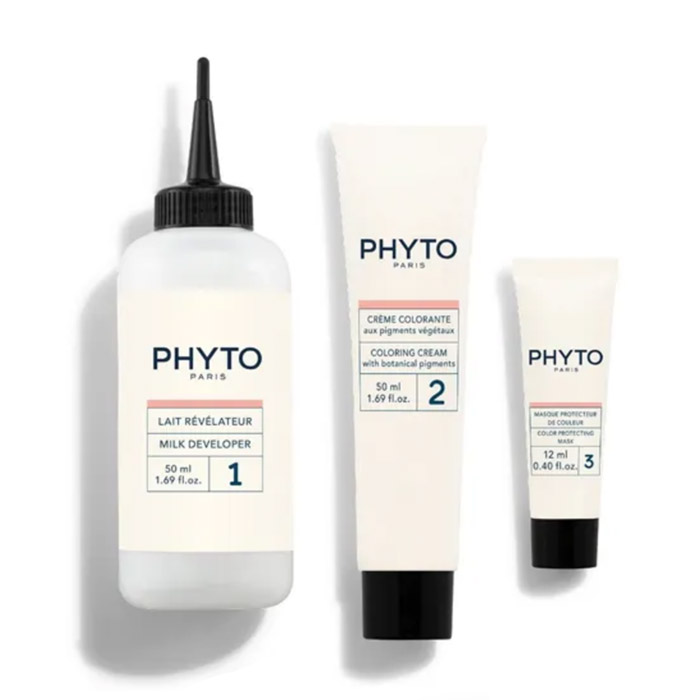 Фито Крем-краска для волос на основе красящих пигментов растений включает в себя проявляющее молочко, крем-краску, маску-защиту цвета и защитные перчатки.