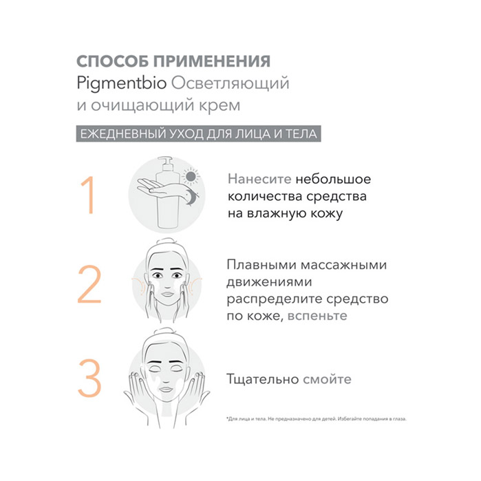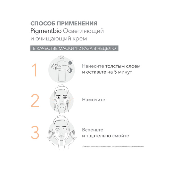 Для лица и тела. Не предназначено для детей. Избегайте попадания в глаза.
