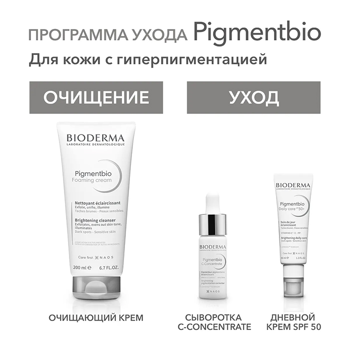 Биодерма Пигментбио Осветляющий и очищающий крем подходит для чувствительной кожи с гиперпигментацией.