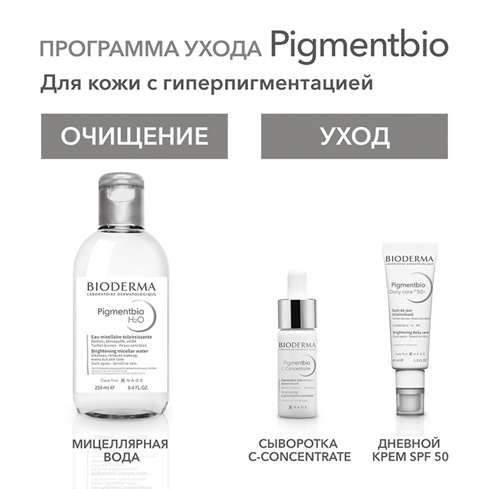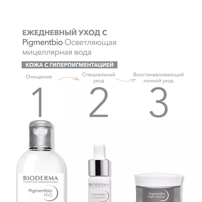Биодерма Пигментбио Осветляющая и очищающая мицеллярная вода Н2О подходит для чувствительной кожи с гиперпигментацией, для лица и контура глаз.