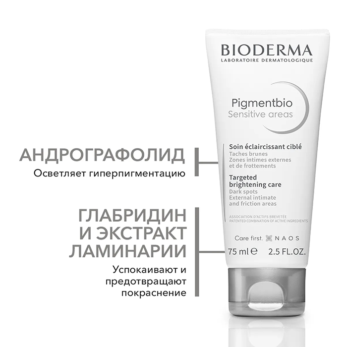 Биодерма Пигментбио Осветляющий крем для чувствительных зон – средство косметическое для чувствительных, склонных к гиперпигментации участков тела (колени, локти, шея, подмышечные впадины, бёдра, зона бикини).