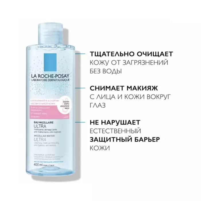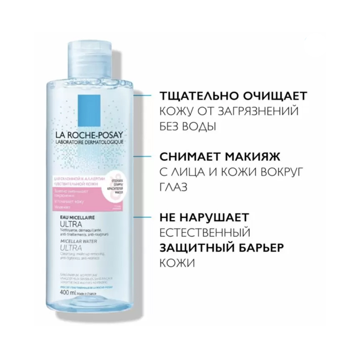 La Roche-Posay Ultra Мицеллярная вода – очищение для склонной к аллергии чувствительной кожи лица и глаз. Не требует смывания водой. Подходит для носителей контактных линз.
