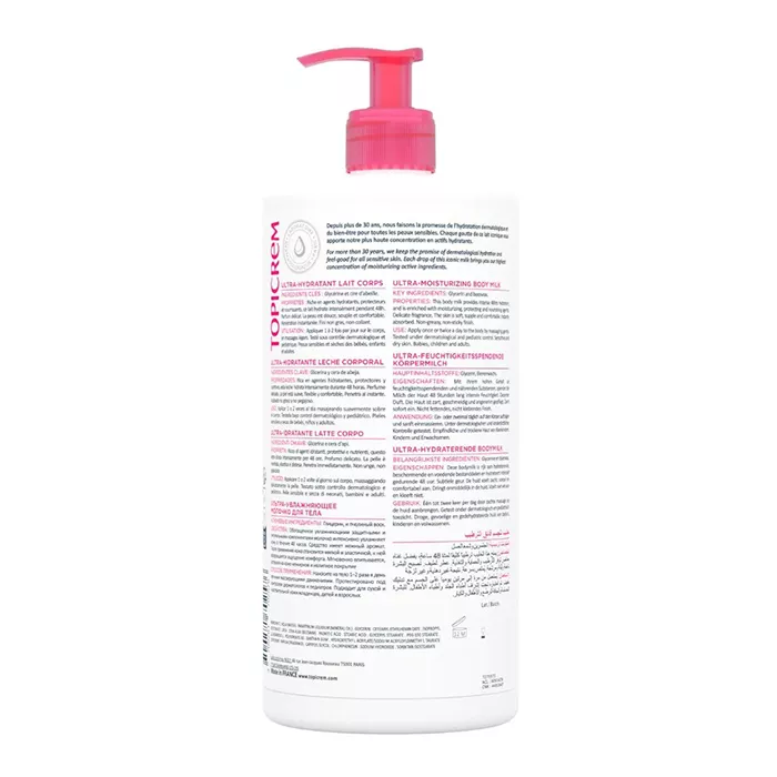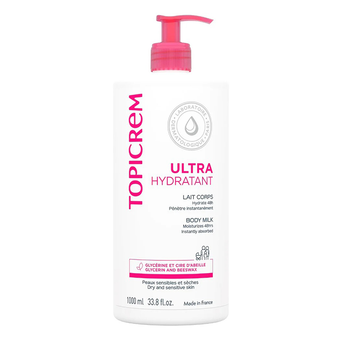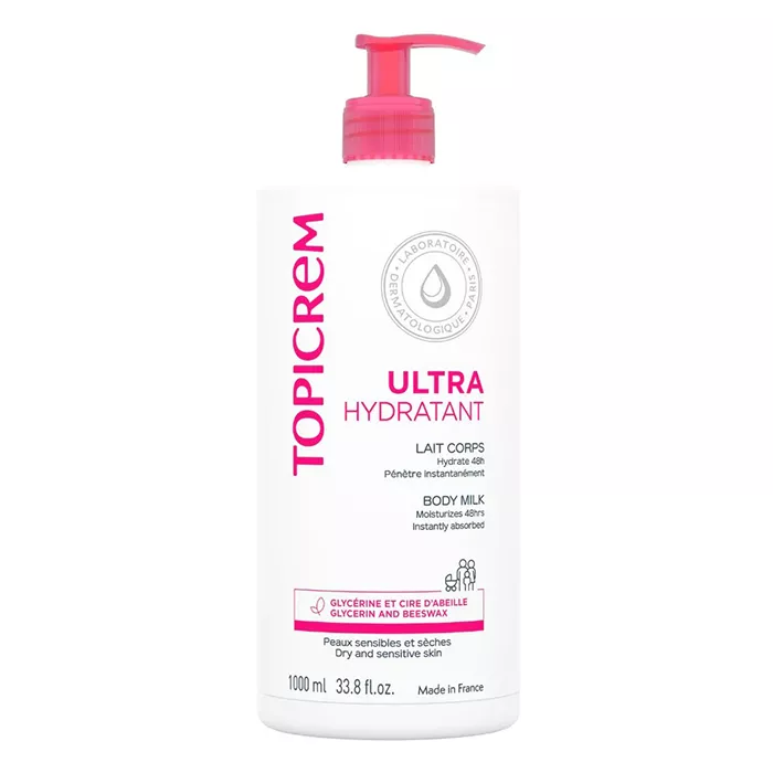 Hаносите Topicrem Ultra-hydratant Lait Corps на сухую кожу тела массажными движениями.