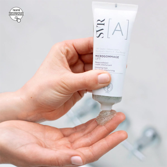 SVR [A] Микрогоммаж Лифт скраб-маска – разглаживающее отшелушивающее средство для лица 2 в 1 для устранения дефектов кожи (неровный тон, расширенные поры, морщины).