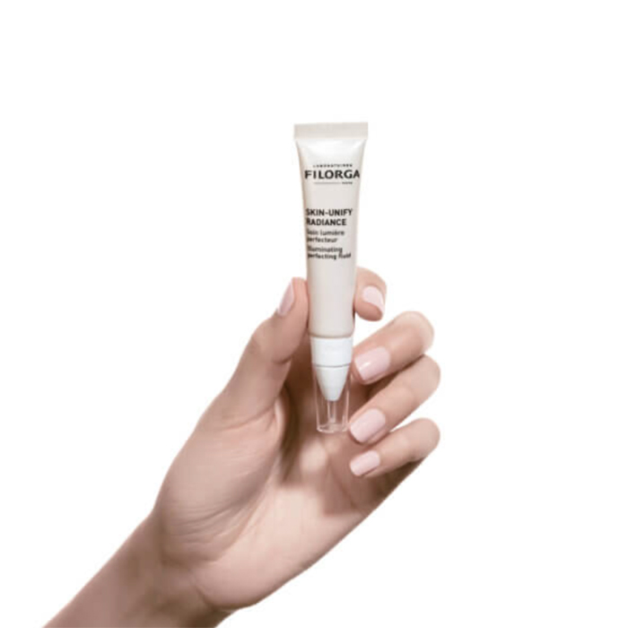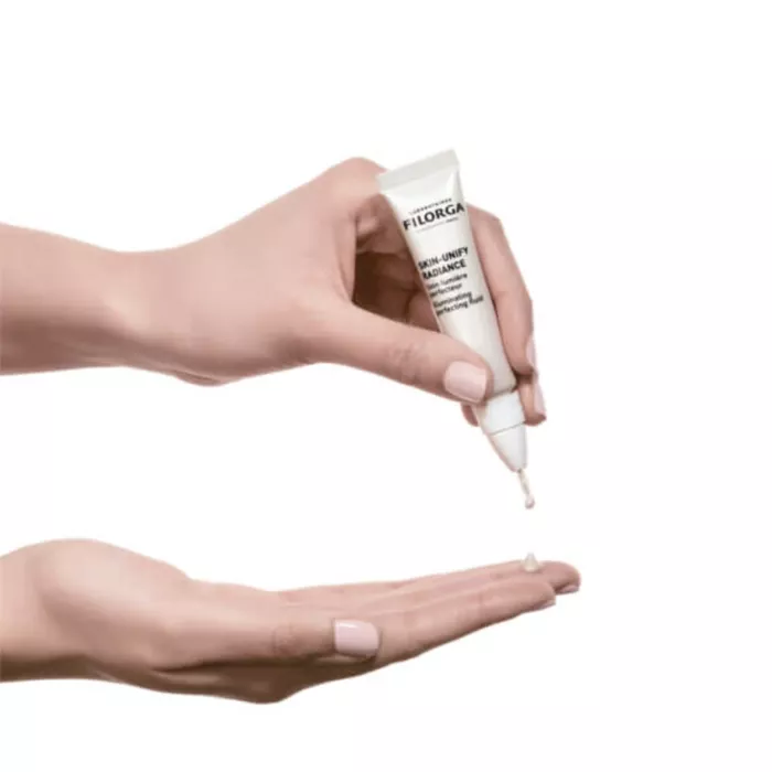 Наносите Флюид Skin-Unify Radiance на ключевые зоны для отражения света (скулы, надбровные дуги, подбородок, дуга купидона, спинка носа), растушуйте кончиками пальцев.