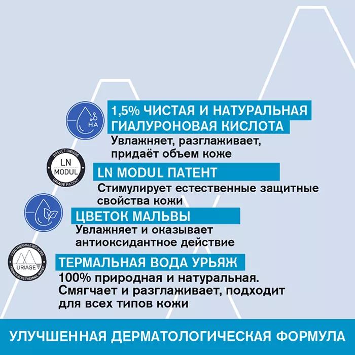 Урьяж Увлажняющая сыворотка-бустер с гиалуроновой кислотой действует на все признаки обезвоживания кожи (морщины, чувство стянутости кожи и др.). Подходит для всех типов кожи.