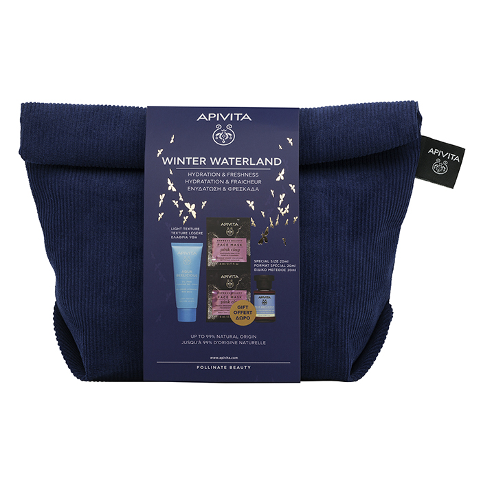Апивита Аква Билишес Легкий увлажняющий крем-гель: AQUA/WATER/EAU**, PROPANEDIOL, AQUA/WATER/EAU, TRIHEPTANOIN, PROPANEDIOL DICAPRYLATE, SILICA, DIHEPTYL SUCCINATE, SODIUM ACRYLATES COPOLYMER, SORBITOL, PANTHENOL, MEL/HONEY/MIEL*, PROPOLIS EXTRACT, IRIS VERSICOLOR EXTRACT, CISTUS INCANUS FLOWER/LEAF/STEM*EXTRACT, ROSA CANINA FRUIT* EXTRACT, NELUMBO NUCIFERA FLOWER EXTRACT, NYMPHAEA COERULEA FLOWER EXTRACT/NYMPHAEA CAERULEA FLOWER EXTRACT, SACCHARIDE HYDROLYSATE, SODIUM HYALURONATE, TOCOPHEROL, TOCOPHERYL ACETATE, ALLANTOIN, LECITHIN, ALOE BARBADENSIS LEAF JUICE POWDER*, ROSA DAMASCENA FLOWER OIL*, HELIANTHUS ANNUUS (SUNFLOWER) SEED OIL*, GLYCERIN, ETHYLHEXYLGLYCERIN, HYDROXYACETOPHENONE, HYDROXYPROPYL CYCLODEXTRIN, CITRIC ACID, CITRONELLYL METHYLCROTONATE, TETRASODIUM GLUTAMATE DIACETATE, CAPRYLOYL GLYCERIN/SEBACIC ACID COPOLYMER, PARFUM/FRAGRANCE, GERANIOL, CITRONELLOL, LINALOOL, LIMONENE.