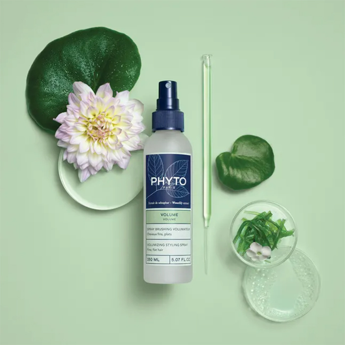 Распылите Phyto Volume Spray brushing volumateur на влажные волосы, на корни и среднюю длину.