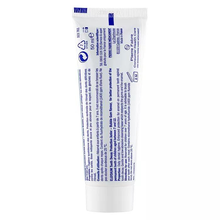 Oral Care Elgydium Tooth Decay Protection Junior Bubble Gum подходит для использования детьми старше 7 лет. Рекомендуется чистить зубы после каждого приёма пищи. Не глотать! Хранить при температуре не выше 25 °.