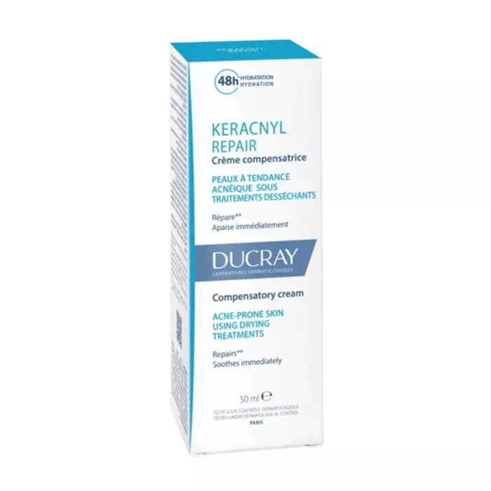 Дюкрэ Керакнил Рипеа Крем компенсирующий для проблемной кожи, который восстанавливает с первого часа, мгновенно увлажняет и успокаивает кожу, поврежденную сушащими процедурами при тяжелых формах акне.