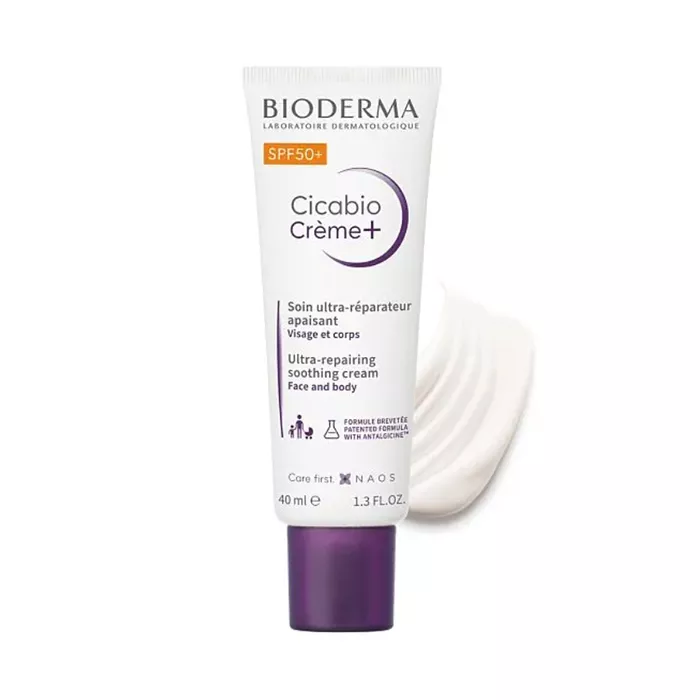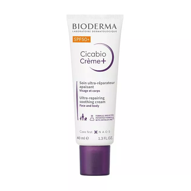 Биодерма Цикабио Крем Плюс SPF50+ помогает восстановить сухие повреждения кожи без мокнутия.