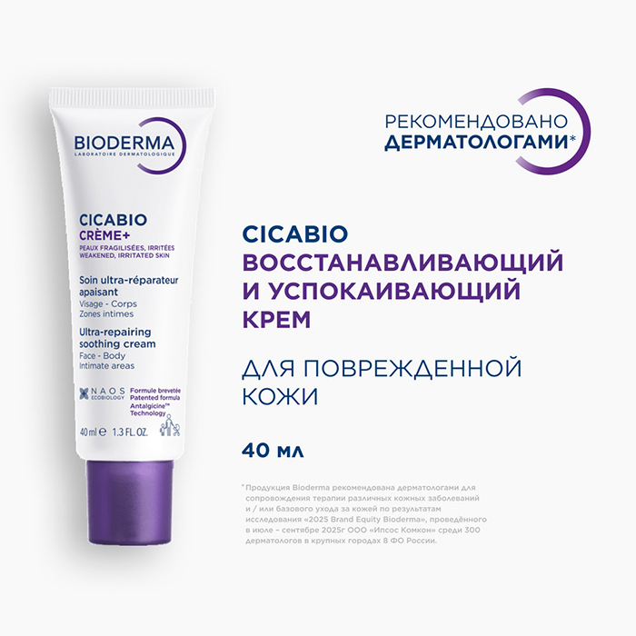 Используйте Bioderma Cicabio Creme+ два раза в день, пока кожа полностью не восстановится.