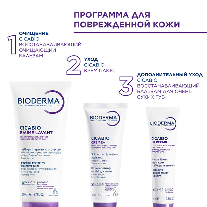Используйте Bioderma Cicabio Creme+ два раза в день, пока кожа полностью не восстановится.