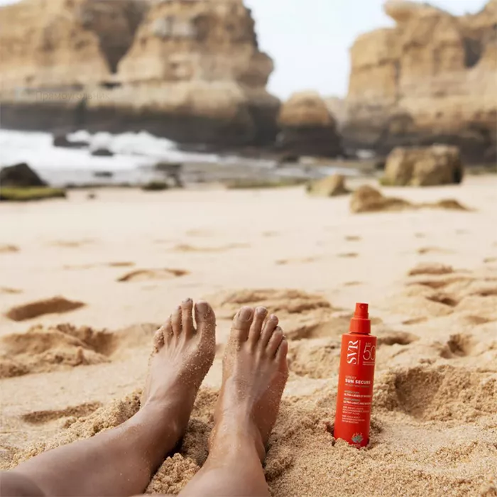 SVR Безопасное солнце Увлажняющий спрей SPF50+ – солнцезащитное средство с очень высокой степенью защиты с заботой о морской среде. Подходит для гиперчувствительной кожи лица и тела новорождённых, детей и взрослых.
