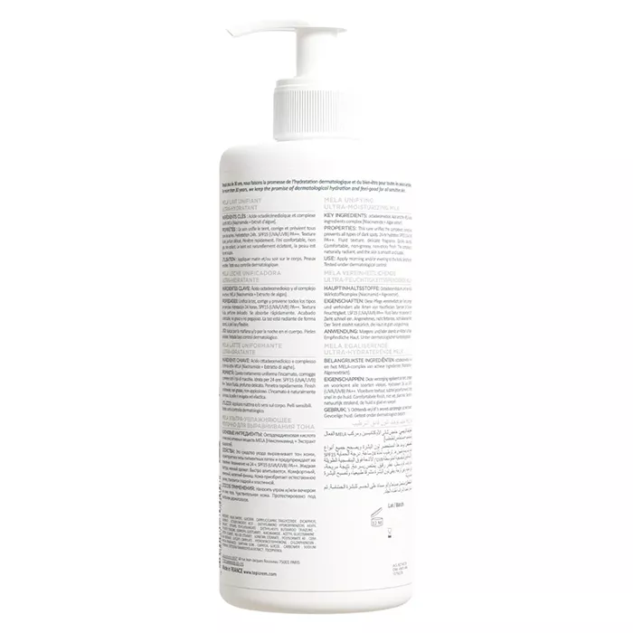 Топикрем Mela Молочко ультра-увлажняющее для выравнивания тона придаёт коже естественное сияние и эластичность.