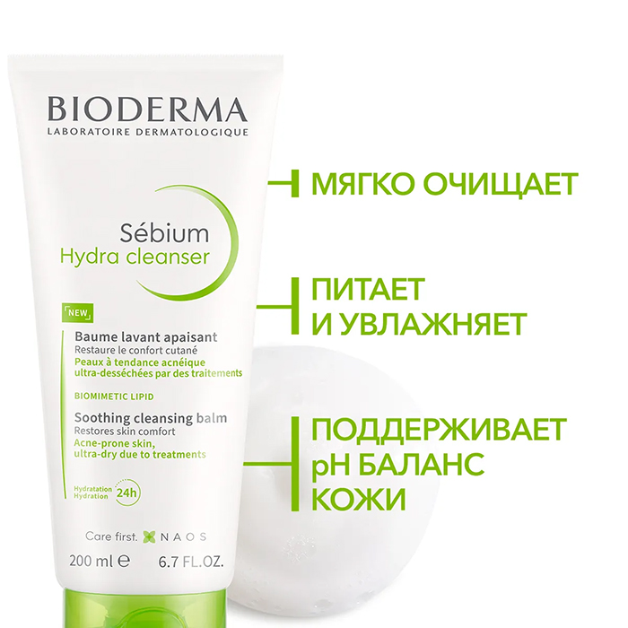 Биодерма Себиум Успокаивающий очищающий бальзам Hydra дарит коже длительное ощущение комфорта. Подходит для склонной к акне и пересушенной в результате терапии кожи.