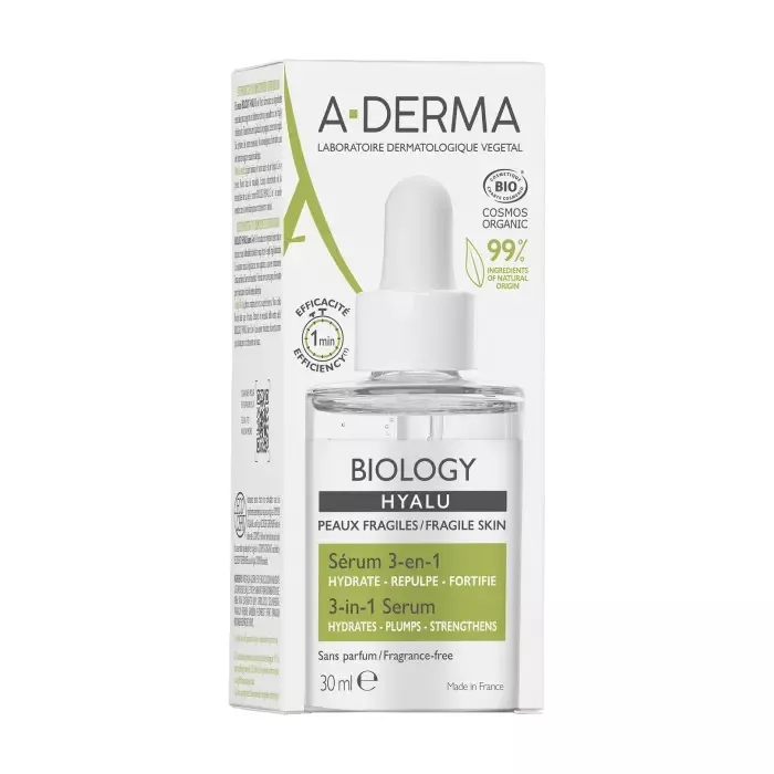 А-Дерма Биолоджи Hyalu Сыворотка 3-в-1 для хрупкой кожи – уникальное и инновационное средство для восстановления баланса хрупкой обезвоженной кожи лица, шеи и контура глаз.