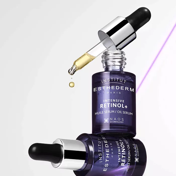 Наносите Institut Esthederm Intensive retinol+ Huile serum вечером на кожу лица и шеи.