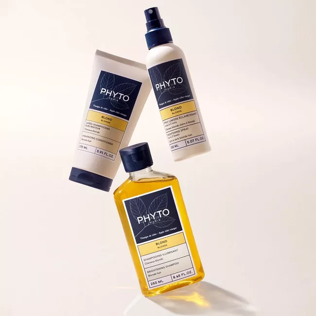 Нанесите небольшое количество Phyto Blond Après-shampooing sublimateur на всю длину волос и оставьте на 1–2 минуты. Распутайте, затем промойте.