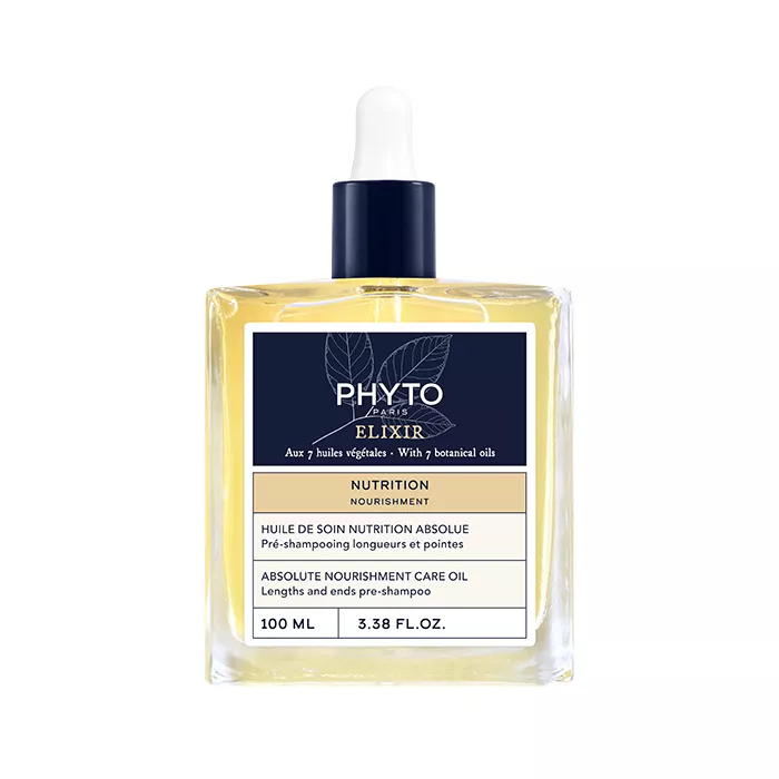 - С помощью пипетки нанести 2-3 капли Phyto Huile de soin Nutrition Absolue elixir на кончики волос