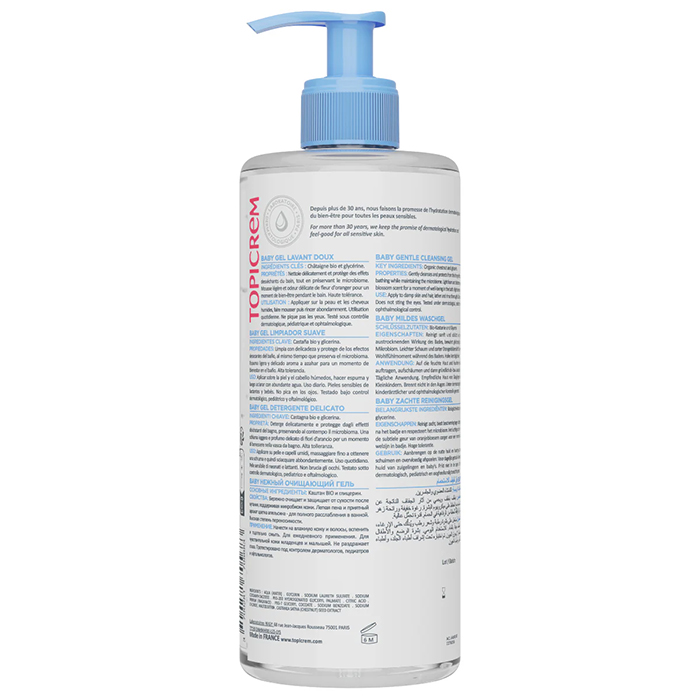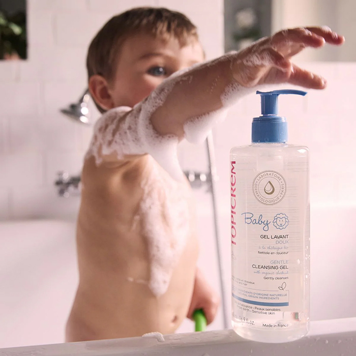 Топикрем Baby Нежный очищающий гель бережно очищает кожу, сохраняя естественный микробиом кожи вашего ребёнка.