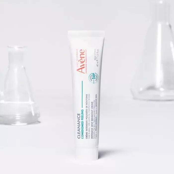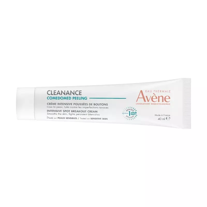 Наносите Avene Cleanance Comedomed peeling Crème intensive poussées de boutons вечером на очищенную сухую кожу, начиная с момента появления несовершенств до момента их исчезновения.