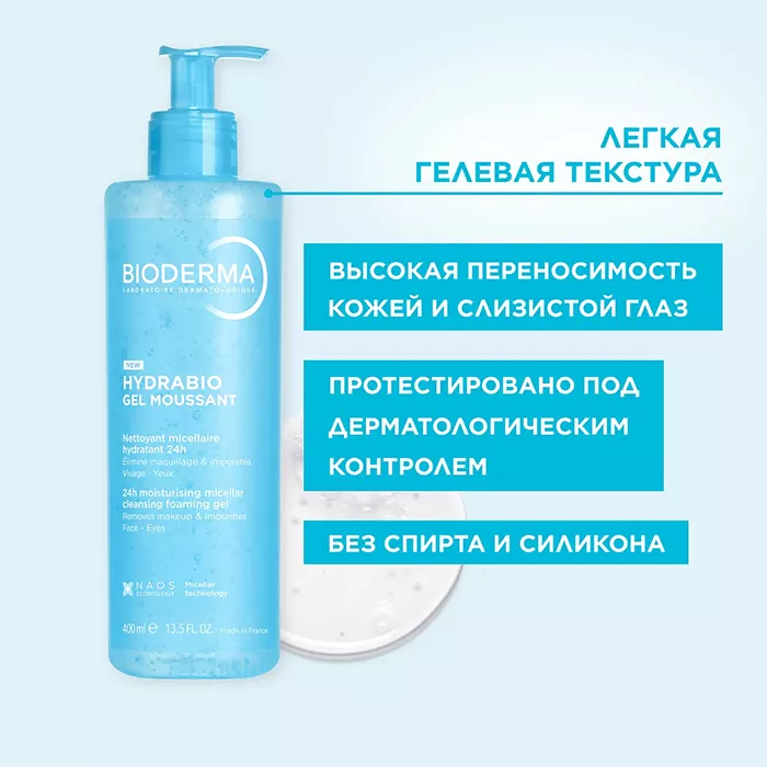 Биодерма Гидрабио Очищающий увлажняющий гель бережно очищает кожу, не повреждая кожный барьер и сохраняя микробиом кожи. Подходит для обезвоженной кожи взрослых.
