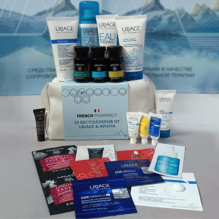 Урьяж Термальная вода: URIAGE THERMAL SPRING WATER, NITROGEN. Среднее содержание элементов на литр: сульфаты - 2860мг хлориды - 3500мг натрий - 2360мг бикарбонаты - 390мг кальций - 600мг (противовоспалительные свойства) магний - 125мг калий - 45,5мг кремний - 42мг цинк - 160мкг (асептические свойства) марганец - 154мкг (противоокислительные свойства) медь - 75мкг железо - 15мкг Сухой остаток = 11000мг/л.