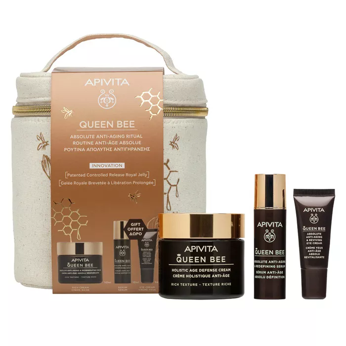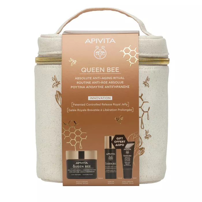 Апивита Набор Квин би – комплексный уход, корректирующий все видимые признаки старения: увлажняет, делает кожу упругой, оказывает эффект лифтинга, разглаживает морщины и придаёт коже сияние.