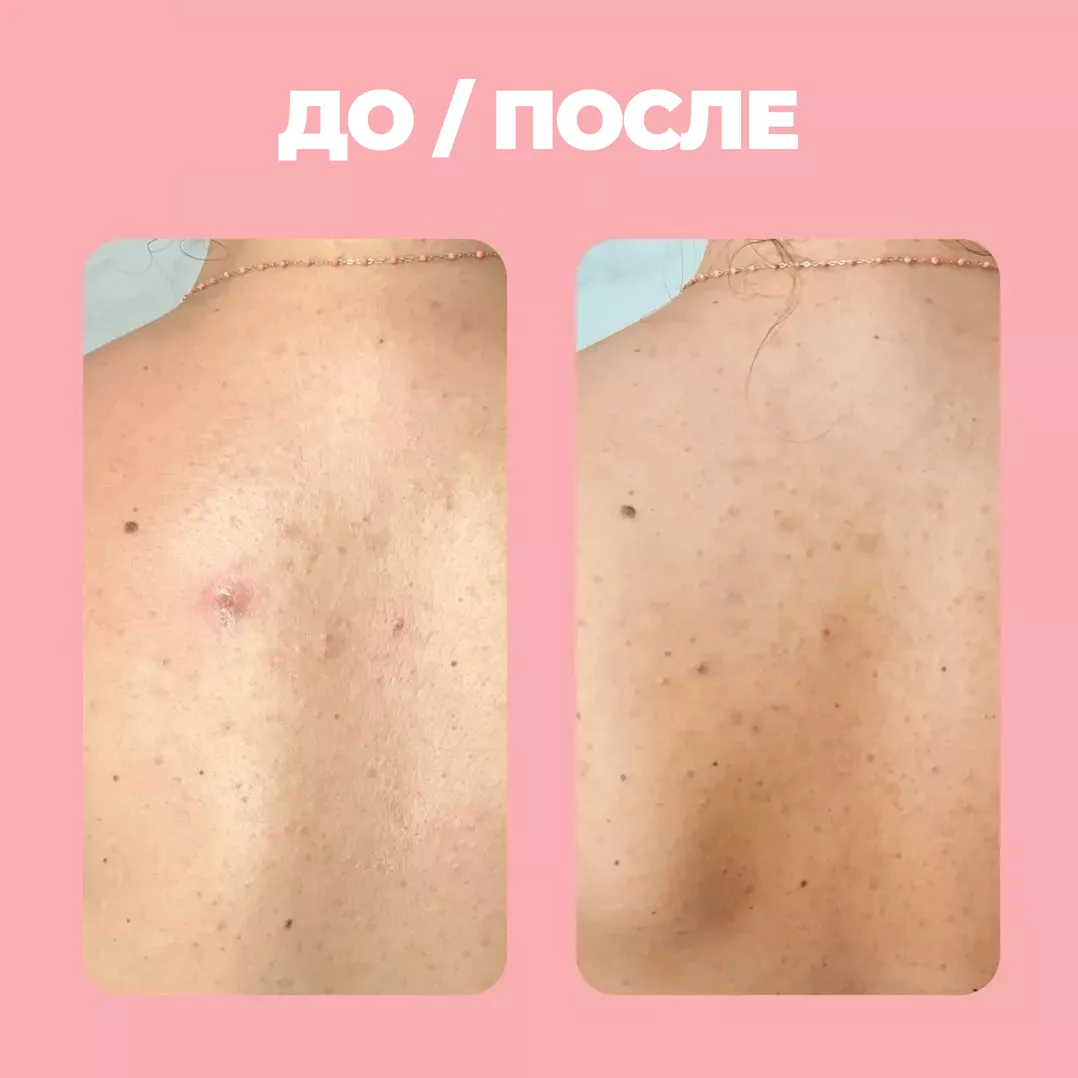 - Уменьшает следы постакне