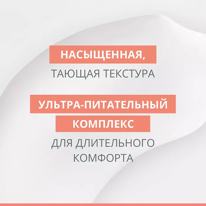 Насыщенная кремовая текстура. День за днём очень сухая кожа становится более эластичной, а цвет лица более сияющим, признаки усталости исчезают.