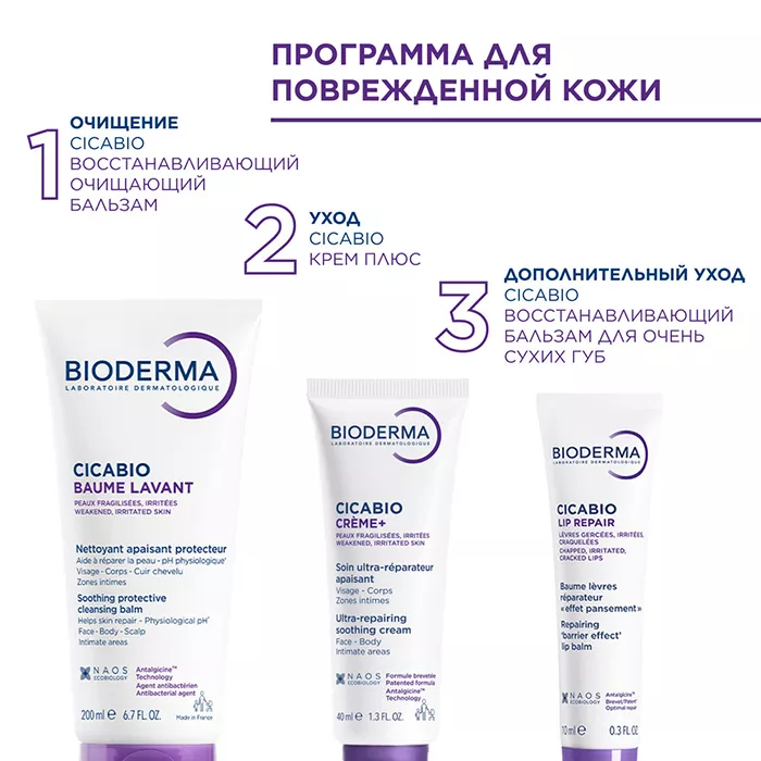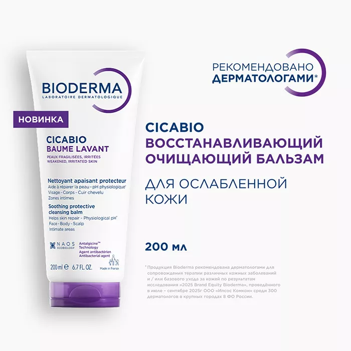 Биодерма Цикабио Восстанавливающий очищающий бальзам - успокаивающий защитный очищающий бальзам для поврежденной и ослабленной кожи лица, тела, головы. Подходит для младенцев*, детей и взрослых