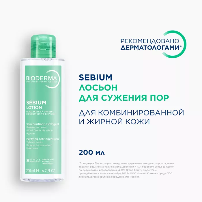 Биодерма Себиум Лосьон предназначен для сужения пор. Подходит для комбинированно и жирной проблемной кожи.