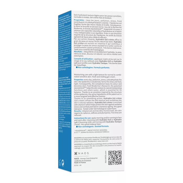 Гидрабио гель-крем подходит для ежедневного увлажнения обезвоженной, нормальной или смешанной тусклой кожи. Запатентованный биологический комплекс Aquagenium™ (Акважениум) мгновенно восстанавливает процессы естественного увлажнения кожи на длительный срок и способствует улучшению циркуляции воды между клетками.