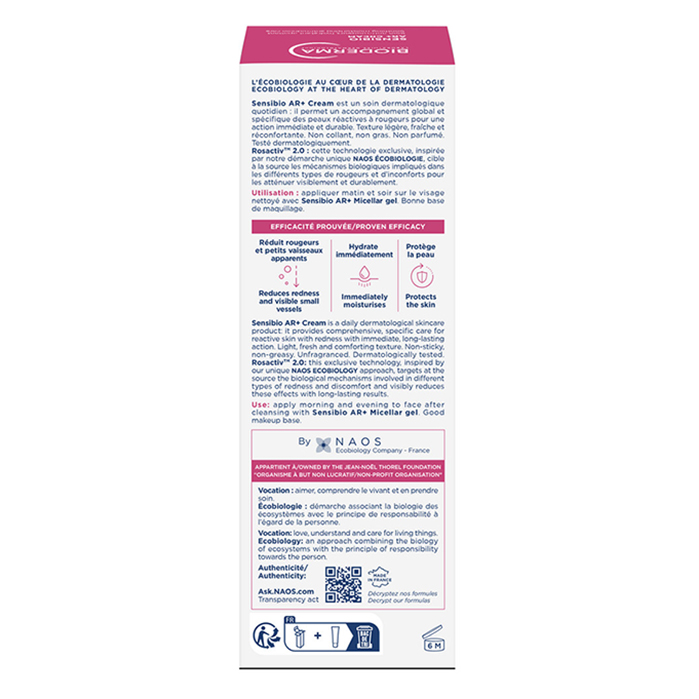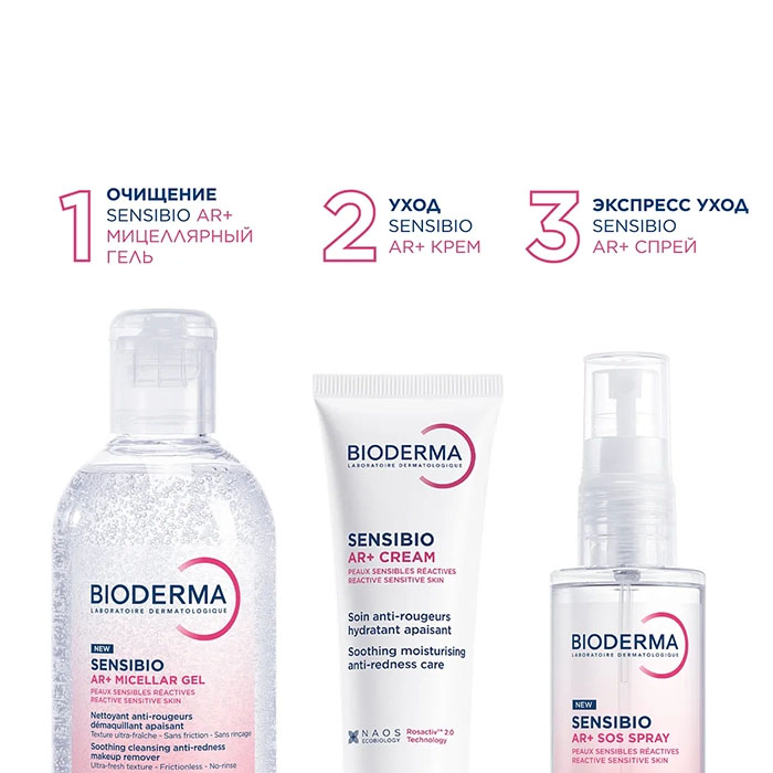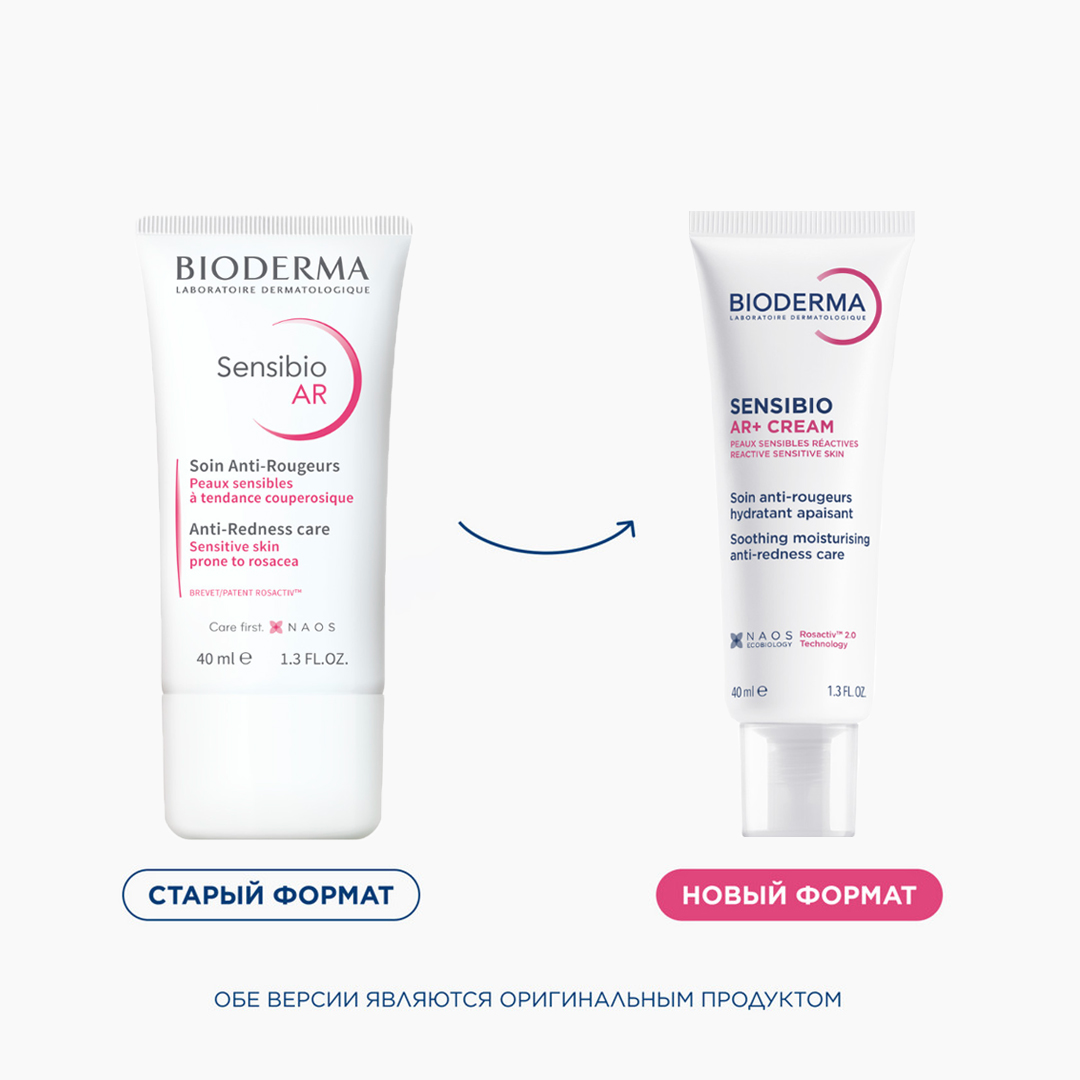 Новый дизайн! Биодерма Sensibio AR+ успокаивающий крем против покраснений с новой технологией ROSACTIV 2.0 разработан для лечебного ухода (отдельно или в качестве компонента терапии) за чувствительной и реактивной кожей, а также за кожей пациентов, страдающих розацеа и куперозом.