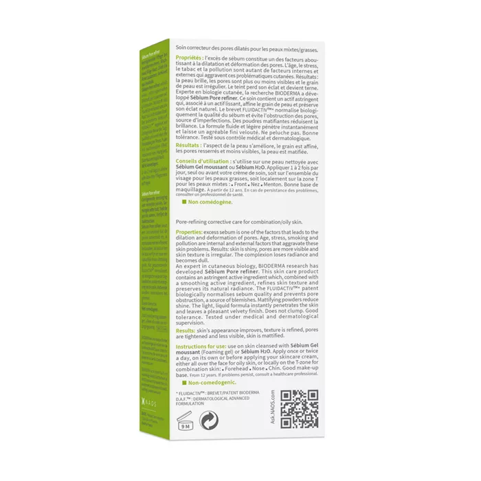 Применяйте Sebium Pore Refiner 1-2 раза в день. При смешанной коже рекомендовано применение локально (Т-зона); при жирной коже – на всё лицо.
