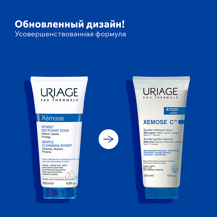 Урьяж Ксемоз С8+ Синдет Мягкий очищающий гель с церамидами – это ежедневное мягкое очищение сухой, атопичной и раздражённой кожи.