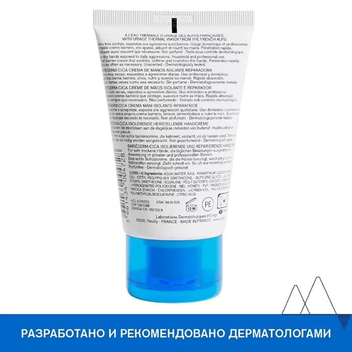 Урьяж Барьедерм Изолирующий восстанавливающий крем для рук для очень сухой, повреждённой и раздражённой кожи, а также при хронических дерматитах, вызванных контактами с внешними агрессивными факторами.