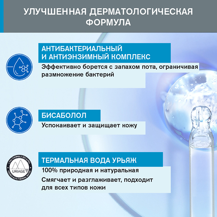 Обладает лёгким ароматом. Подходит для чувствительной кожи. Не оставляет белых следов на одежде.