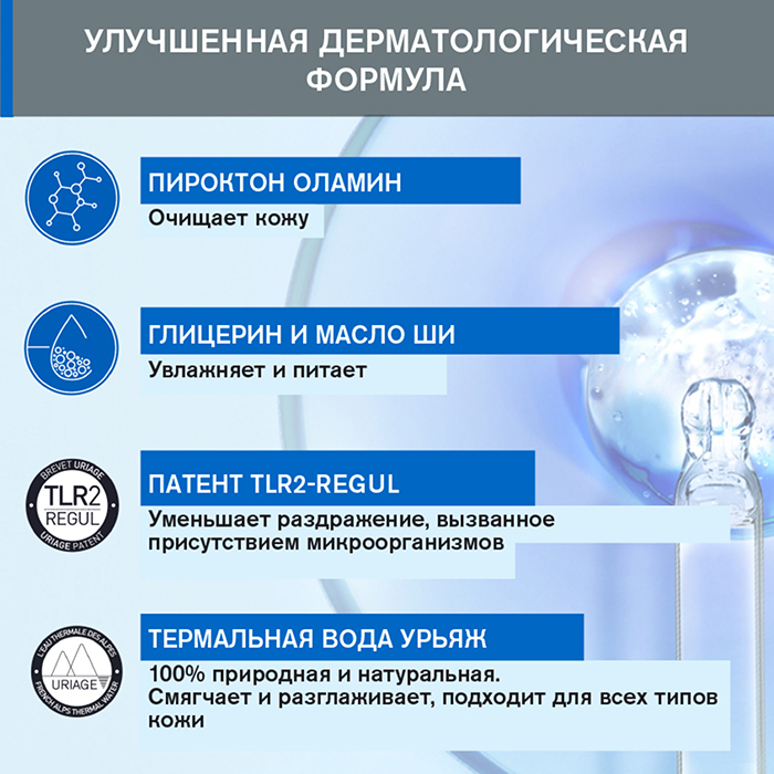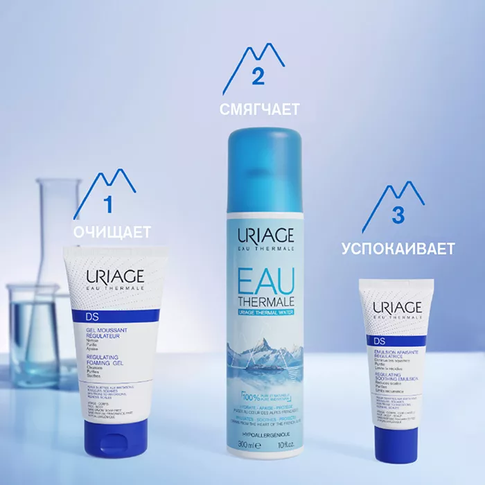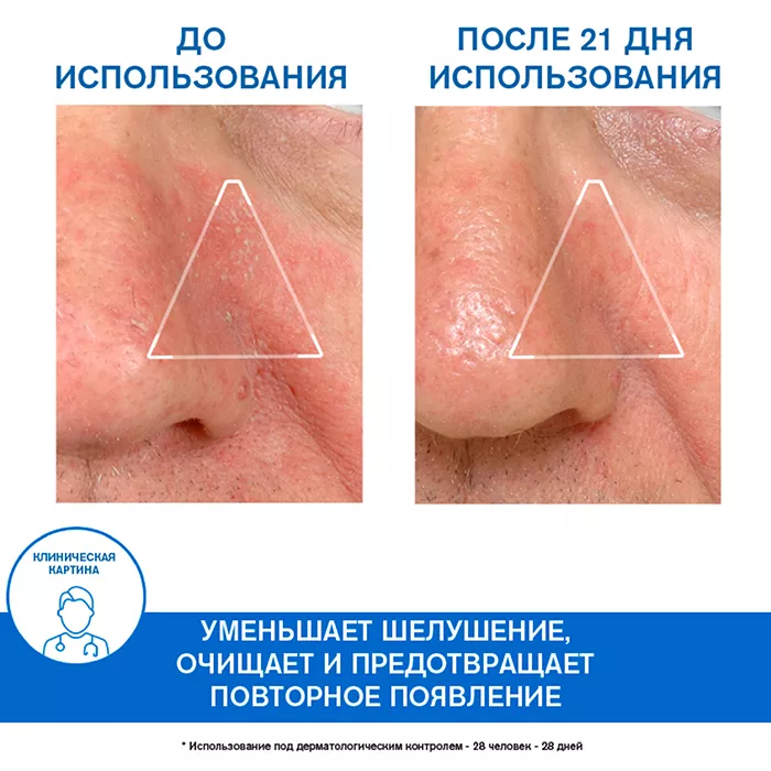 Урьяж D.S. Эмульсия разработана для ухода за лицом, телом и кожей головы при шелушении, раздражении и покраснении. Применяется при обострении себорейного дерматита и как сопровождение лечения при любой грибковой инфекции, в том числе перхоти.