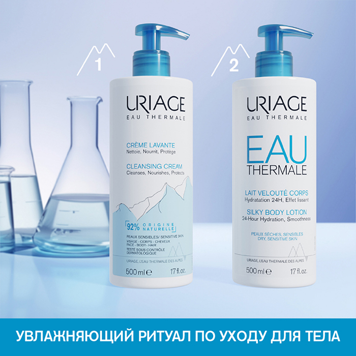 Наносите Uriage Eau Thermale Lait Velouté Corps на очищенную кожу после ванны или душа.