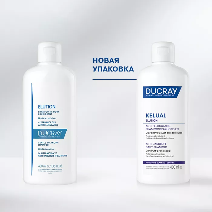 Дюкрэ Келюаль Элюсьон (Kelual Elution) Поддерживающий ежедневный шампунь предотвращает рецидивы перхоти и успокаивает раздражённую кожу волосистой части головы.
