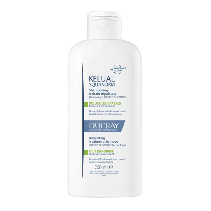 Дюкрэ Келюаль Скванорм Шампунь рекомендуется при жирной перхоти, сопровождающейся зудом. Возвращает здоровье коже волосистой части головы с первого применения. Подходит для взрослых и детей с 12 лет.