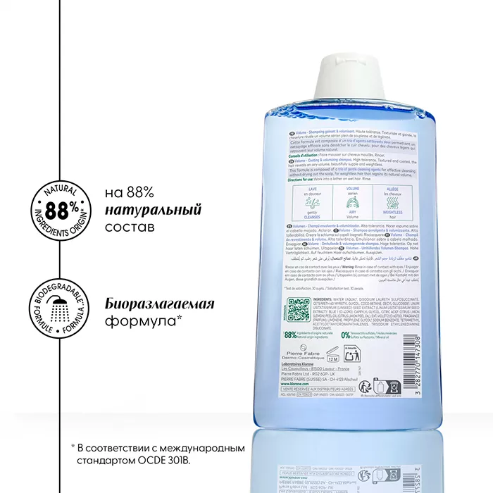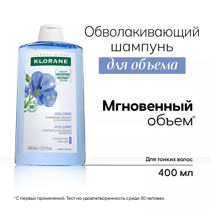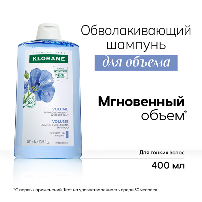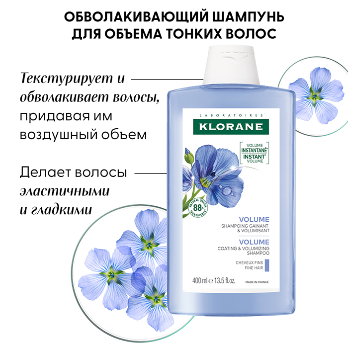 Клоран Обволакивающий шампунь для объема тонких волос на основе волокон льна придает объём и улучшает структуру тонких волос, обладает укрепляющим действием и дарит тонким волосам объём.